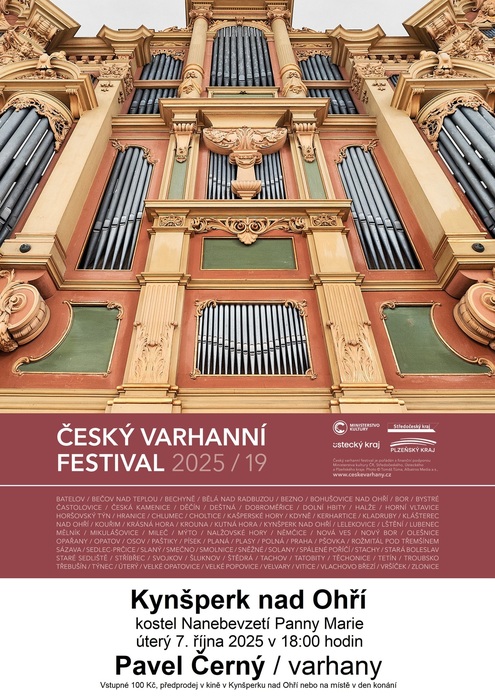 Český varhanní festival 2025 - konání 7. října 2025 od 18:00 v kostele Nanebevzetí Panny Marie v Kynšperku nad Ohří. Vstupné 100,00 Kč.