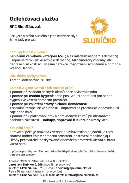 Telefon: +420 733 648 710, E-mail: socialni@spc-slunicko.cz