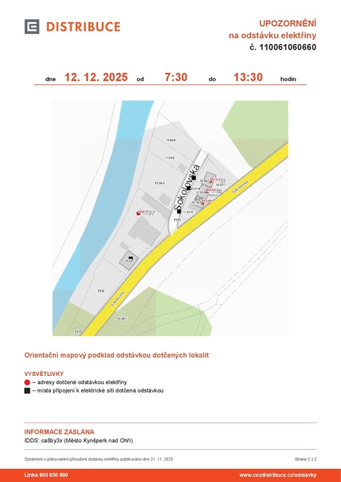 UPOZORNĚNÍ na odstávku elektřiny č. 110061060660