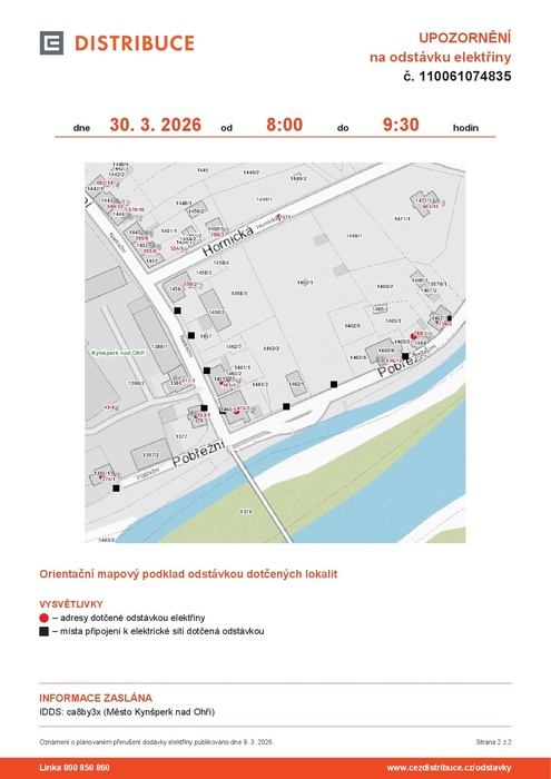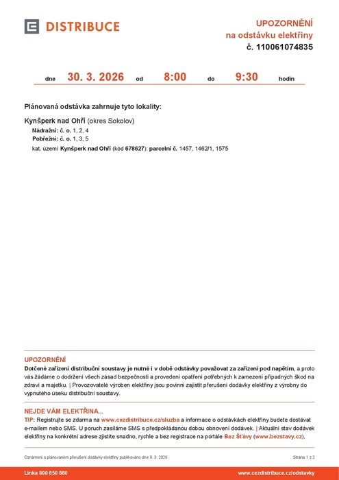 UPOZORNĚNÍ na odstávku elektřiny č. 110061074835