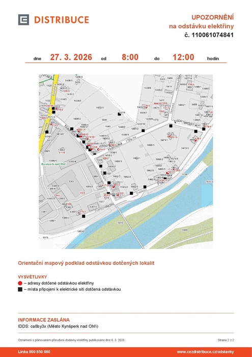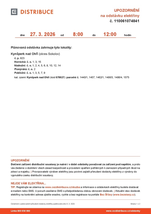 UPOZORNĚNÍ na odstávku elektřiny č. 110061074841