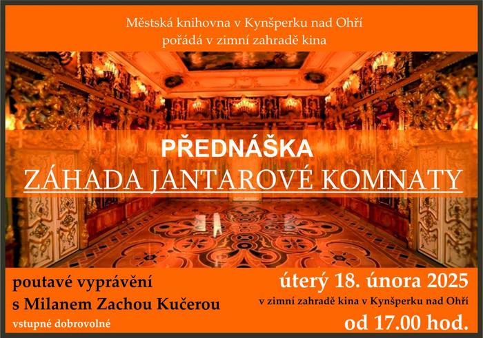 Přednáška Záhada jantarových komnat se uskuteční 18. 2. 2025 od 17 hodin v knihovně v Kynšperku nad Ohří.