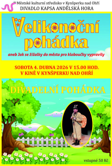 Velikonoční pohádka - divadelní pohádka 4. dubna 2026 v 15:00 v kině v Kynšperku nad Ohří. Vstupné 50 Kč.