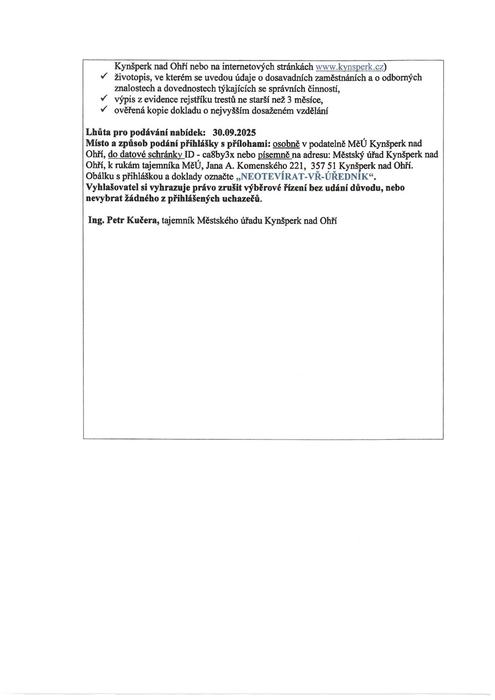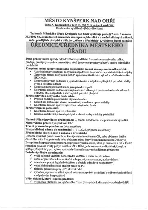 Výběrové řízení na úřednici/úředníka městského úřadu
