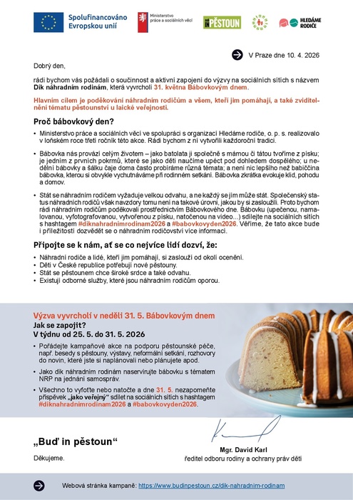 Webová stránka kampaně: https://www.budinpestoun.cz/dik-nahradnim-rodinam